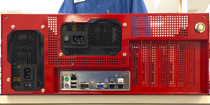 Chassis: The chassis is still a red 4U box, but it looks different. First, we changed the design to support recommendations for minimizing electromagnetic emissions. Second, we changed the faceplate to improve air flow-through with our cool laser-cut logo. Third, we made the two removable covers tool-less, creating covers that slide and latch into place. This removed the need to remove/insert screws to access the drive bay or motherboard bay, saving time during assembly and during maintenance (replacing a failed drive, for example).